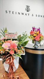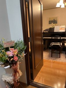 いただいたお花はお家に贈っていただき、レッスン室の前に飾りました!